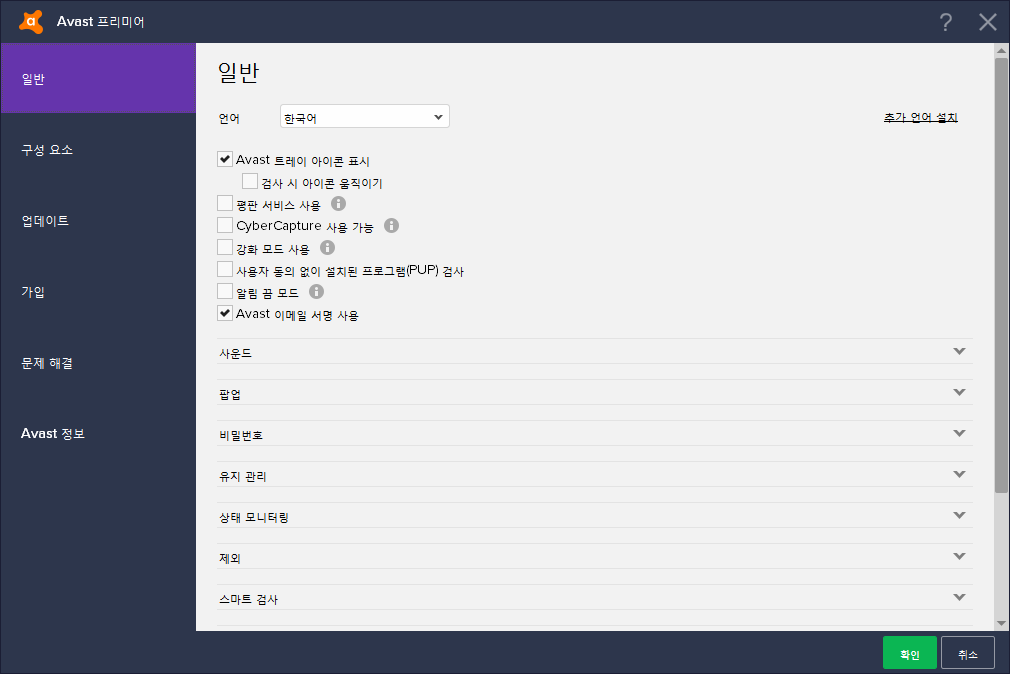 본 사진은 실제로 필자가 사용하는 백신 avast 프리미어 입니다. (눈치 빠르신 분은 아시겠지만 일부 감시가 꺼져있다고 나와 있죠. 이 부분은 핵심 포인트!) 실제로 avast 프리미어의 경우 av-test(세계적으로 유명한 백신 검사 기관)에서는 본 제품(avast premier는 표시되어 있지 않고 avast 무료 버전만 제출되어 있습니다.)을 제출하지 않아 모르겠지만.. 굉장히 다재다능한 프로그램입니다. 하지만 장점을 다른 관점에서 보면 단점이라고 하던가요.. (사실 반대도 되지만요 **) 이러한 강력한 성능 덕분에 컴퓨터에 무리를 주는 것은 당연지사이며, 심지어는 위에 언급한 바와 같이 인터넷 속도가 느려지는 경우가 생기기도 합니다. 해서 처음에는 그냥 일을 할 때는 잠깐 백신을 꺼두고 사용했지만.. 항상 해줘야 한다는 귀찮음과 모든 기능을 정지하다보니 생기게 되는 약간의 보안문제 때문에 제가 직접 원인을 찾고자 여러 기능들을 일일이 꺼보며 시험을 해보았습니다. (컴퓨터에 무리가 가는 부분은.. 설정으로는 한계가 있으니 다른 가벼운 백신을 사용하시거나, 컴퓨터를 업그레이드하시는 것이 좋은 선택이 될 것 같습니다.)